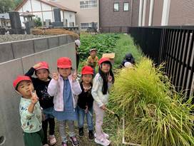 23日には年長児が育てたサツマイモ掘りをしました。とても大きく成長したサツマイモをみて、一所懸命にお世話をした甲斐があったのではないでしょうか。11月になったら、石焼き芋にしてみんなで美味しく食べたいと思います(^^