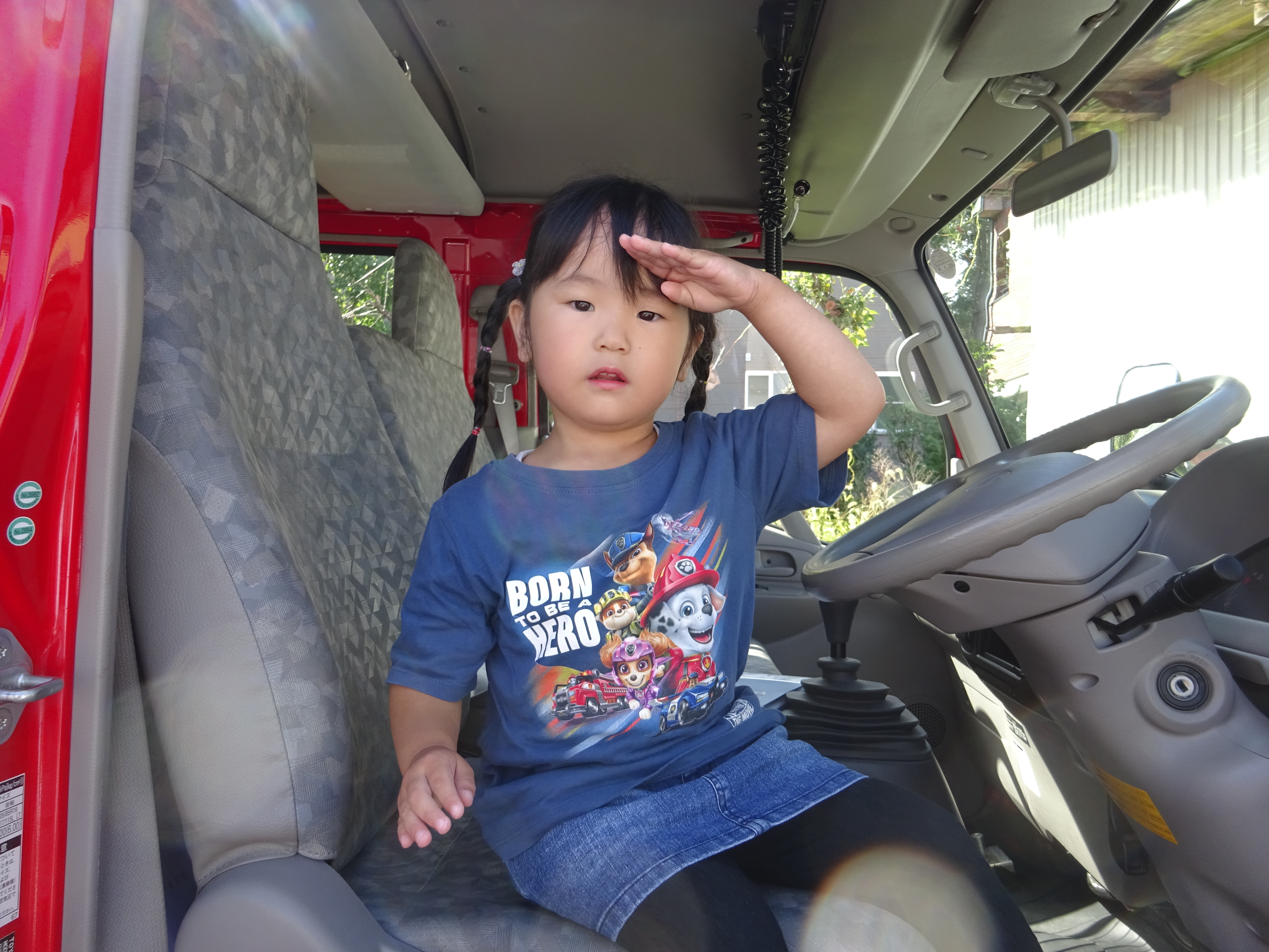- 消防車に乗って敬礼🫡‼️(ことり)